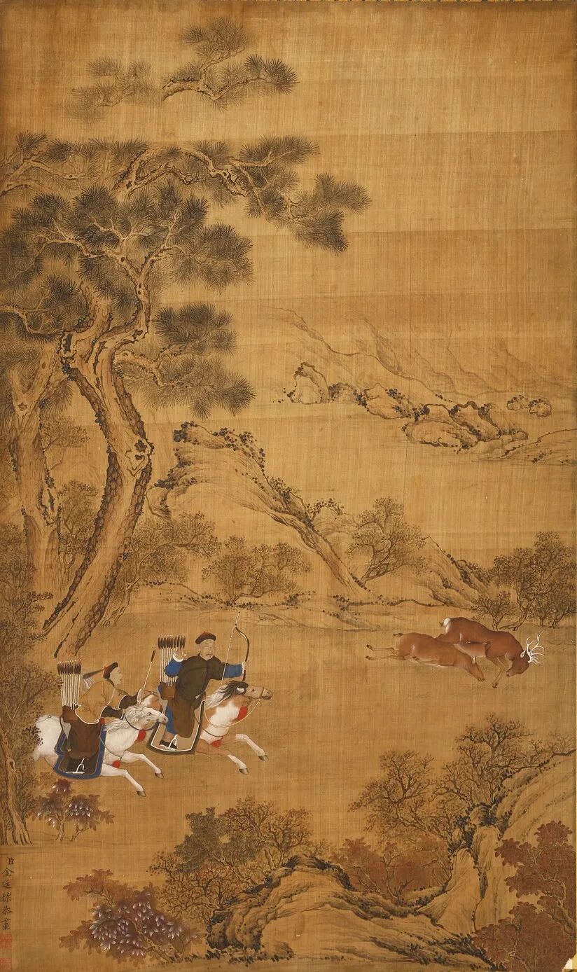 Lot 5260 金廷标(?-1767) 十八世纪 清乾隆 皇家射猎图