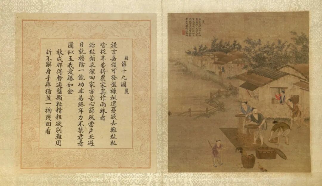 康熙二十八年(1689年),圣祖皇帝二次南巡时,偶获楼俦所绘的《耕织图》,展卷阅览之余,感慨织女之寒、农夫之苦,遂命内廷供奉焦秉贞以楼作为基础重绘《御制耕织全图》。并亲撰序文,于每图上亲笔题写七言诗,首开清代帝王亲颁《耕织图》的先河。