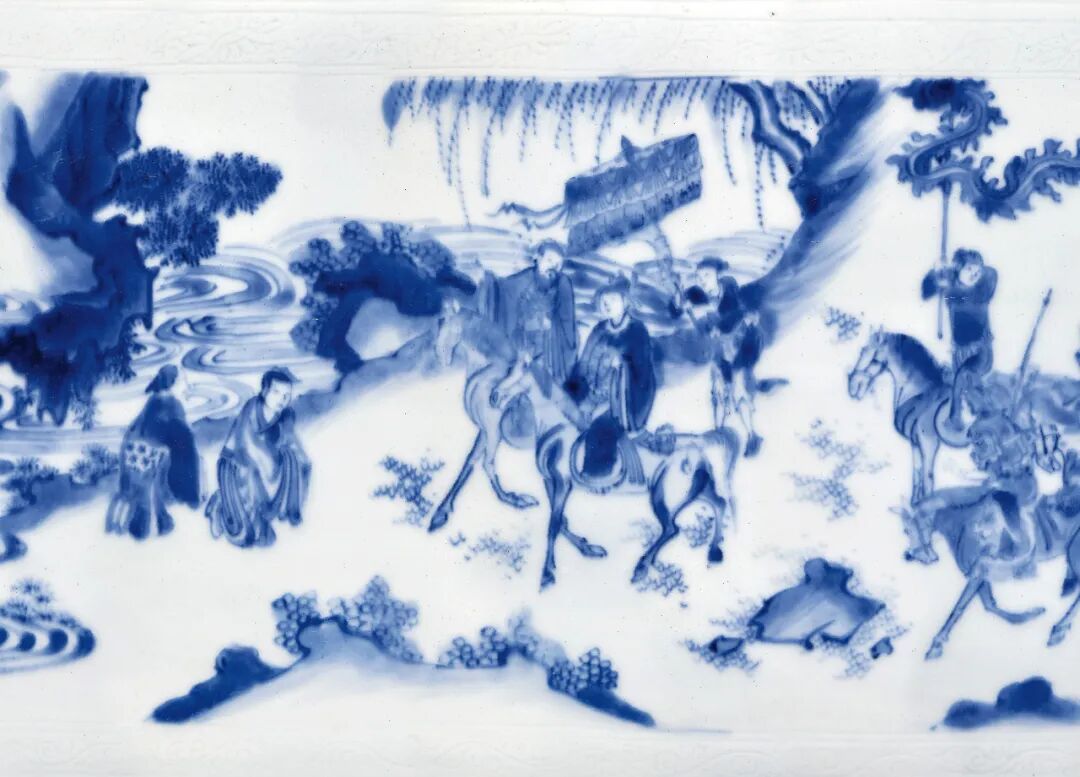 明代万历后期官窑逐渐停烧,窑工参与景德镇民窑生产,文人阶层亦介入手工业的生产,使传统艺术与文人雅趣紧密结合。民窑瓷器在技法风格上迎合文人的艺术取向,取材于文学作品,装饰点染间表达时人的精神诉求。
