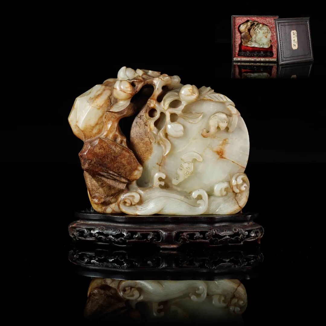 Lot 85 清乾隆 和田玉雕福寿纹摆件
