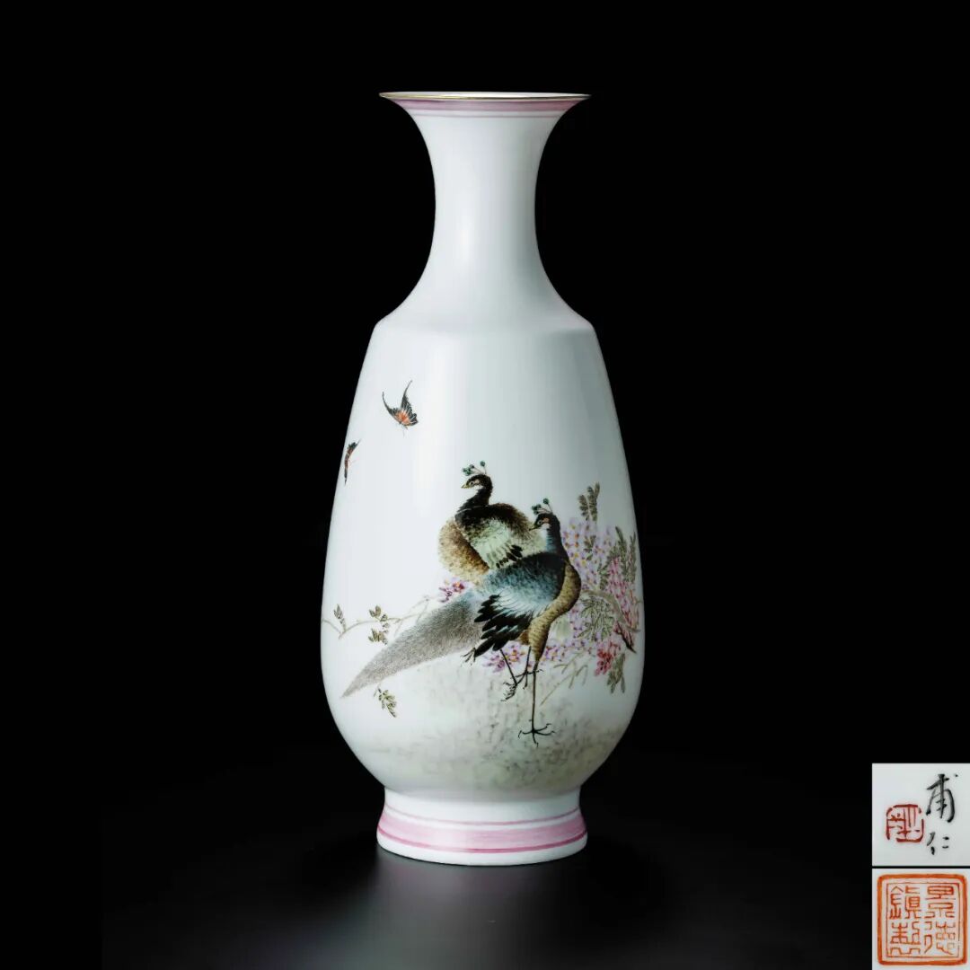Lot 88 粉彩孔雀蝴蝶纹花瓶