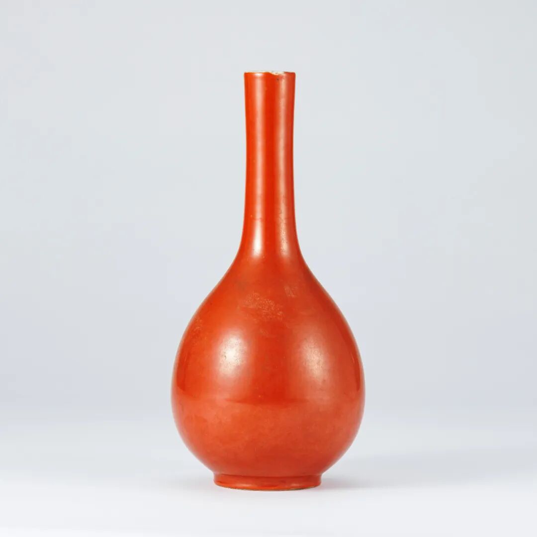 Lot 104清乾隆 珊瑚红釉胆瓶