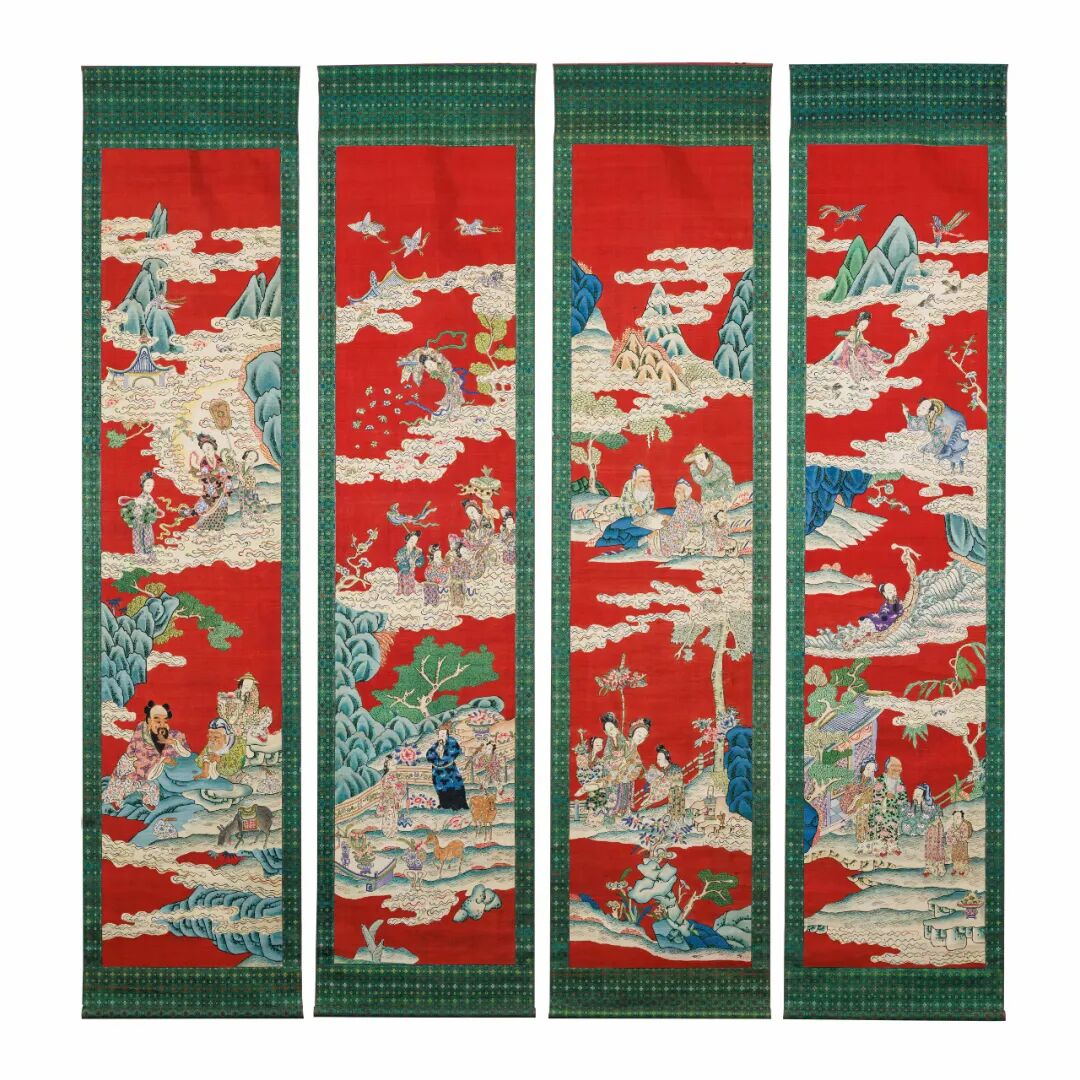 Lot 8 清 缂丝群仙祝寿图四条屏