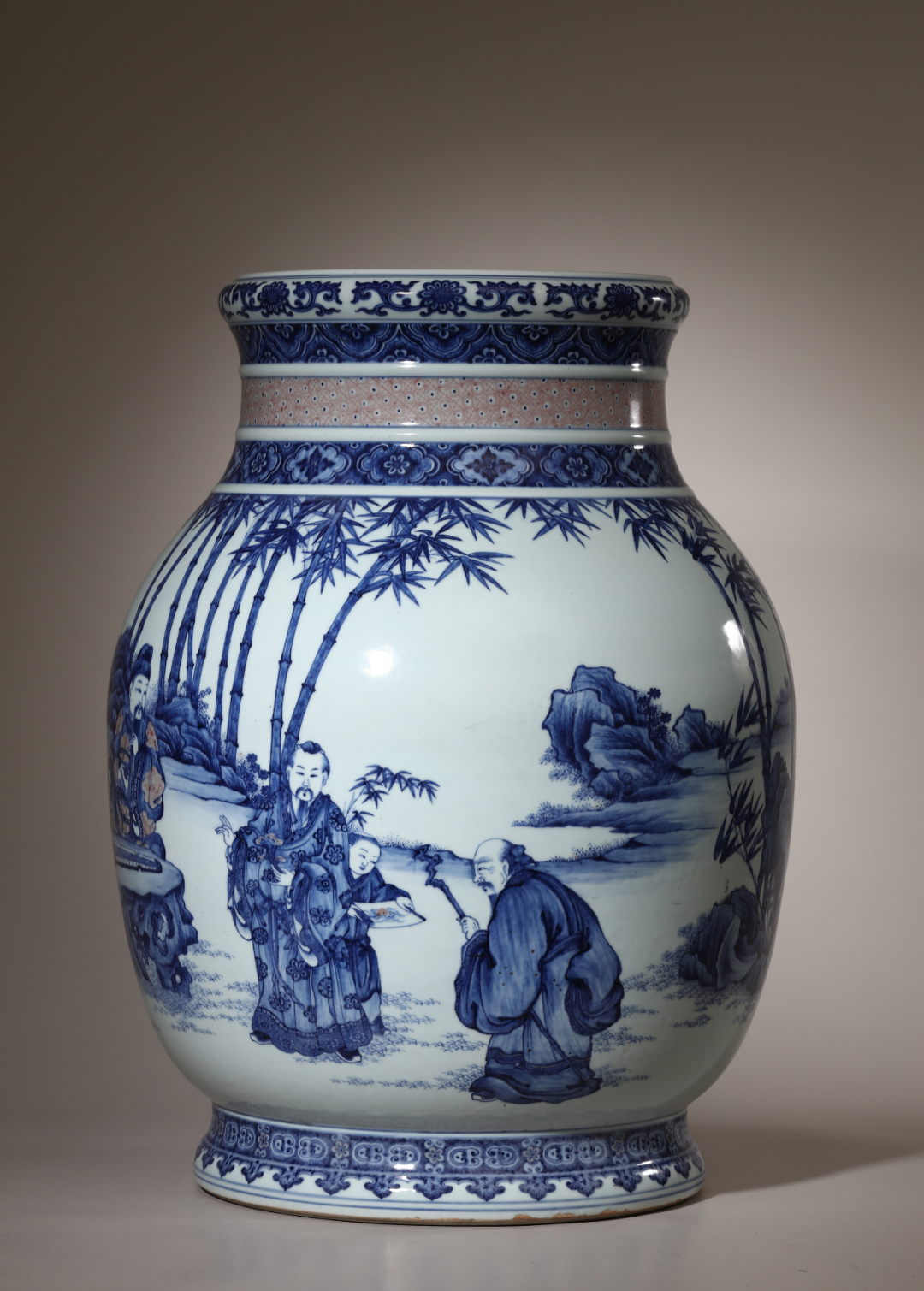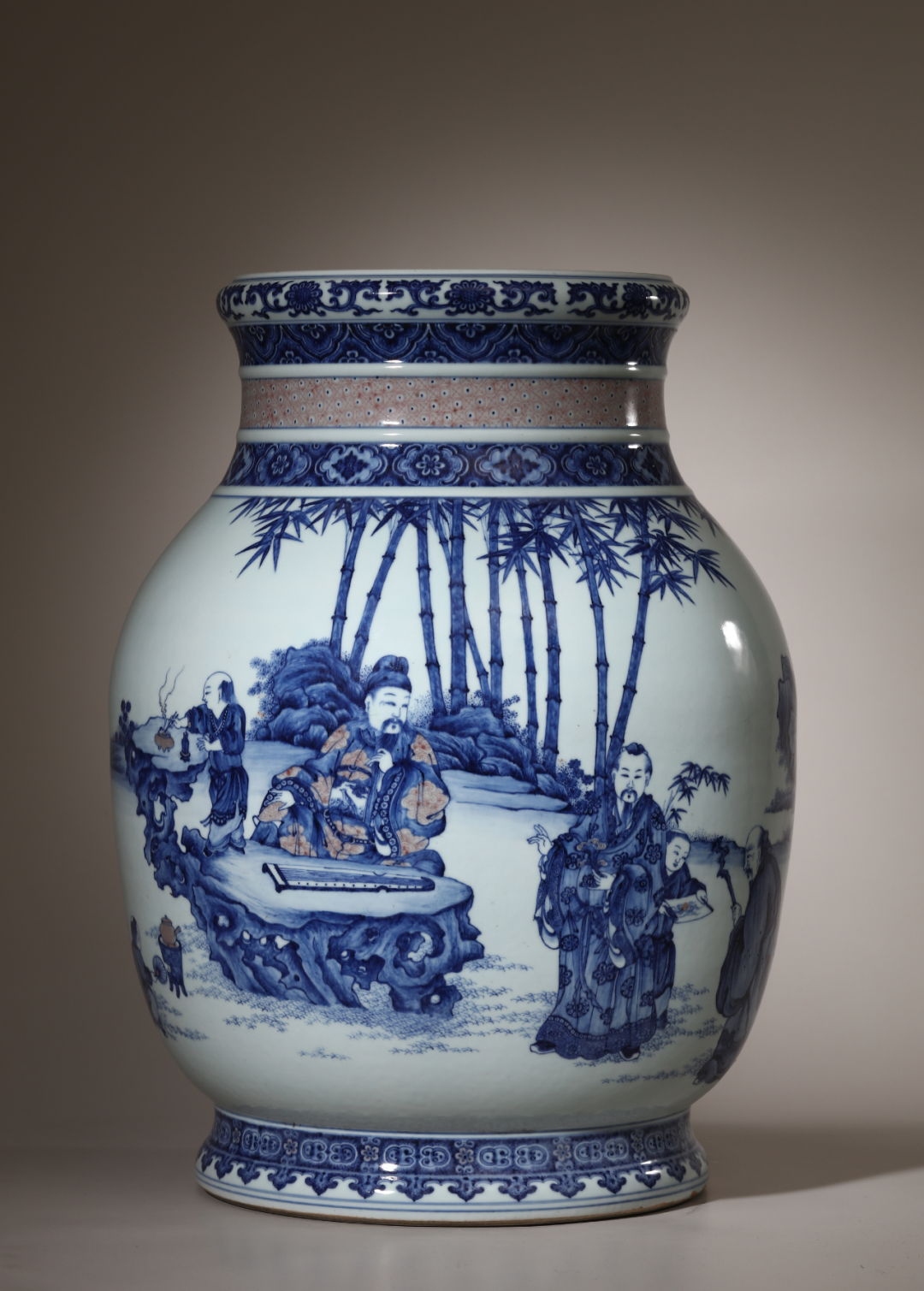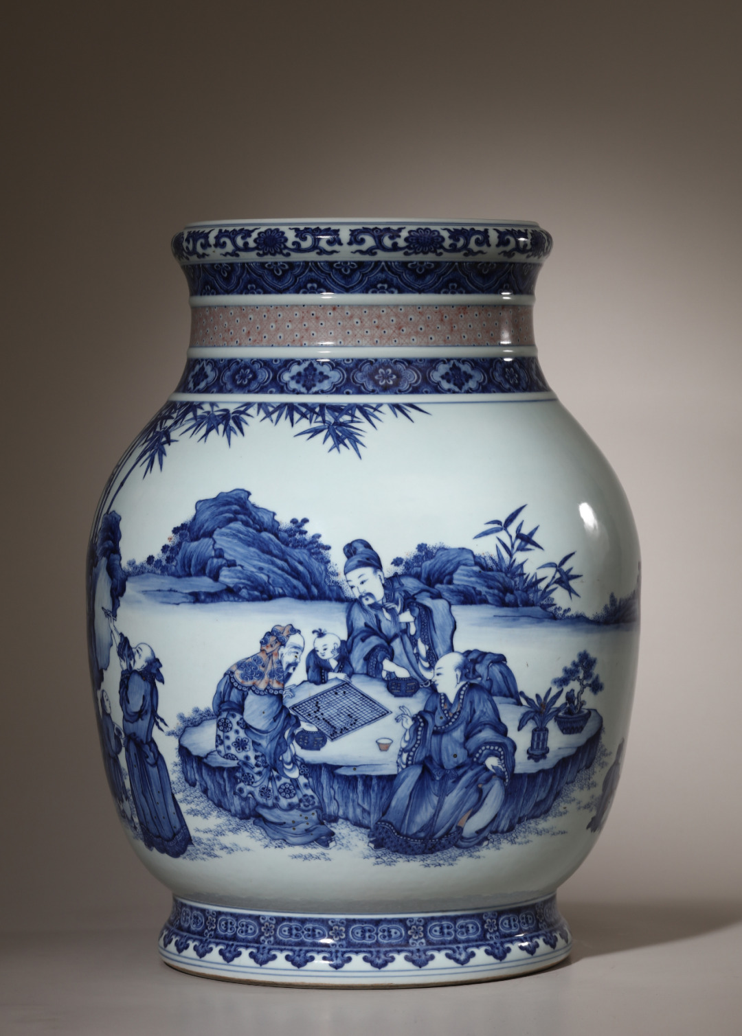 清乾隆 青花釉里红“琴棋书画诗酒茶”人物大尊