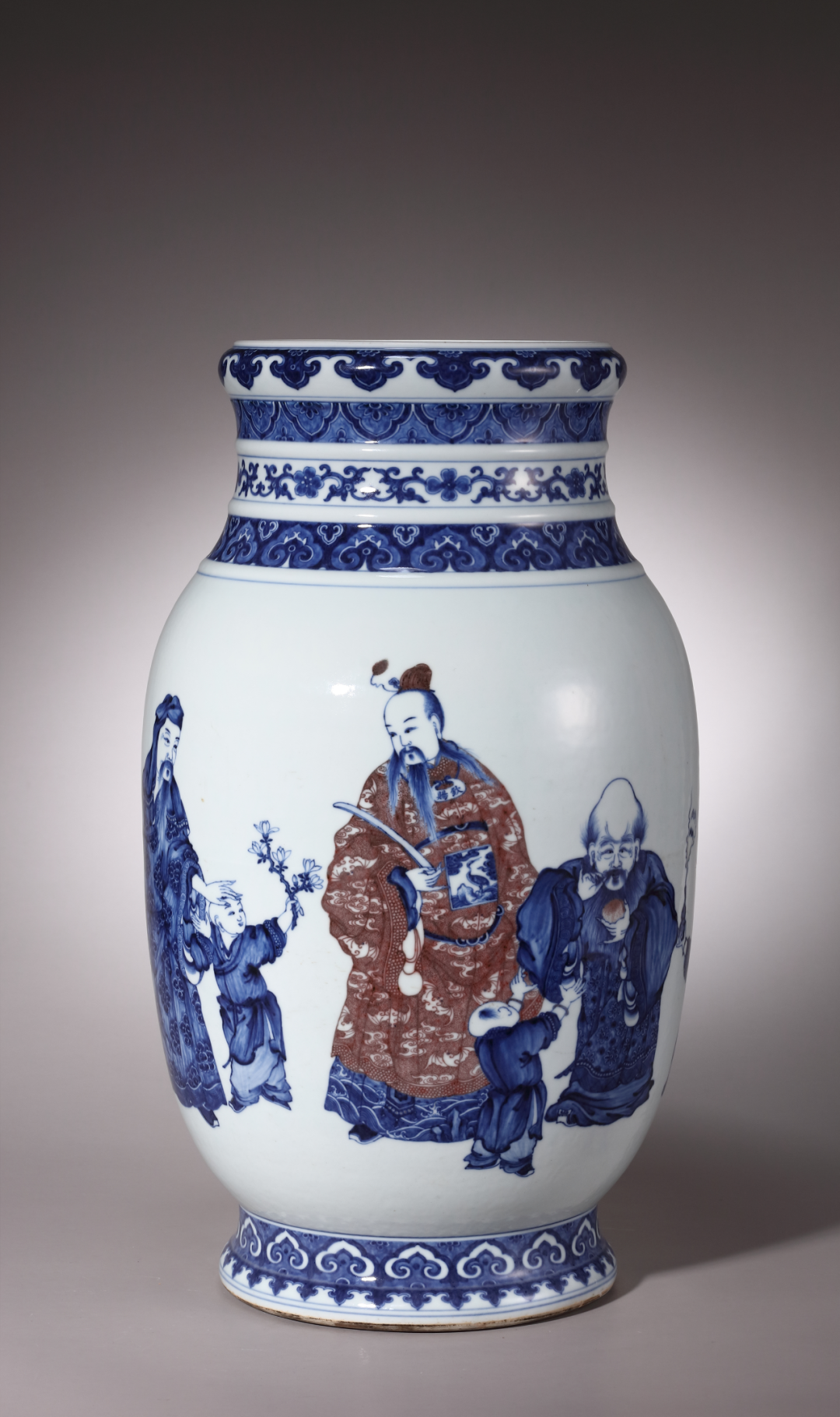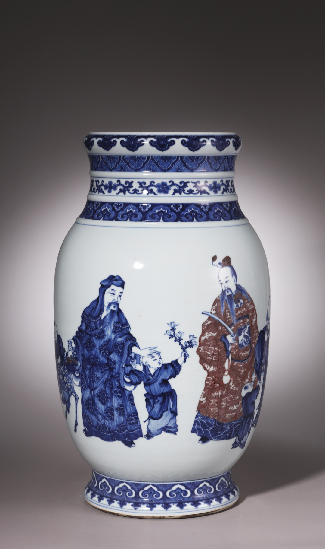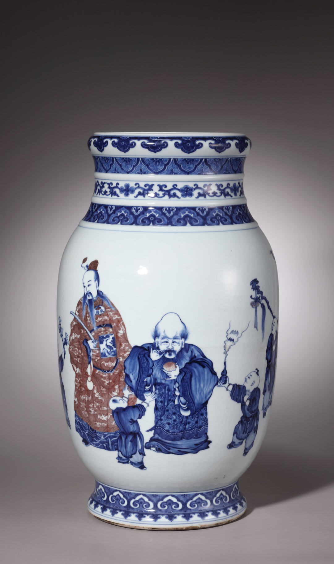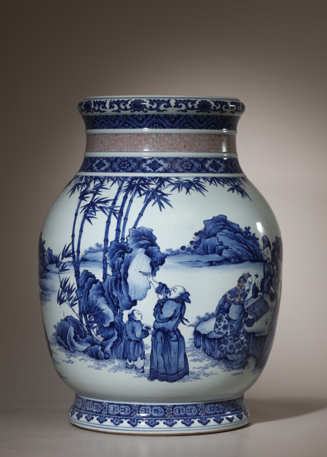 清乾隆 青花釉里红“琴棋书画诗酒茶”人物大尊