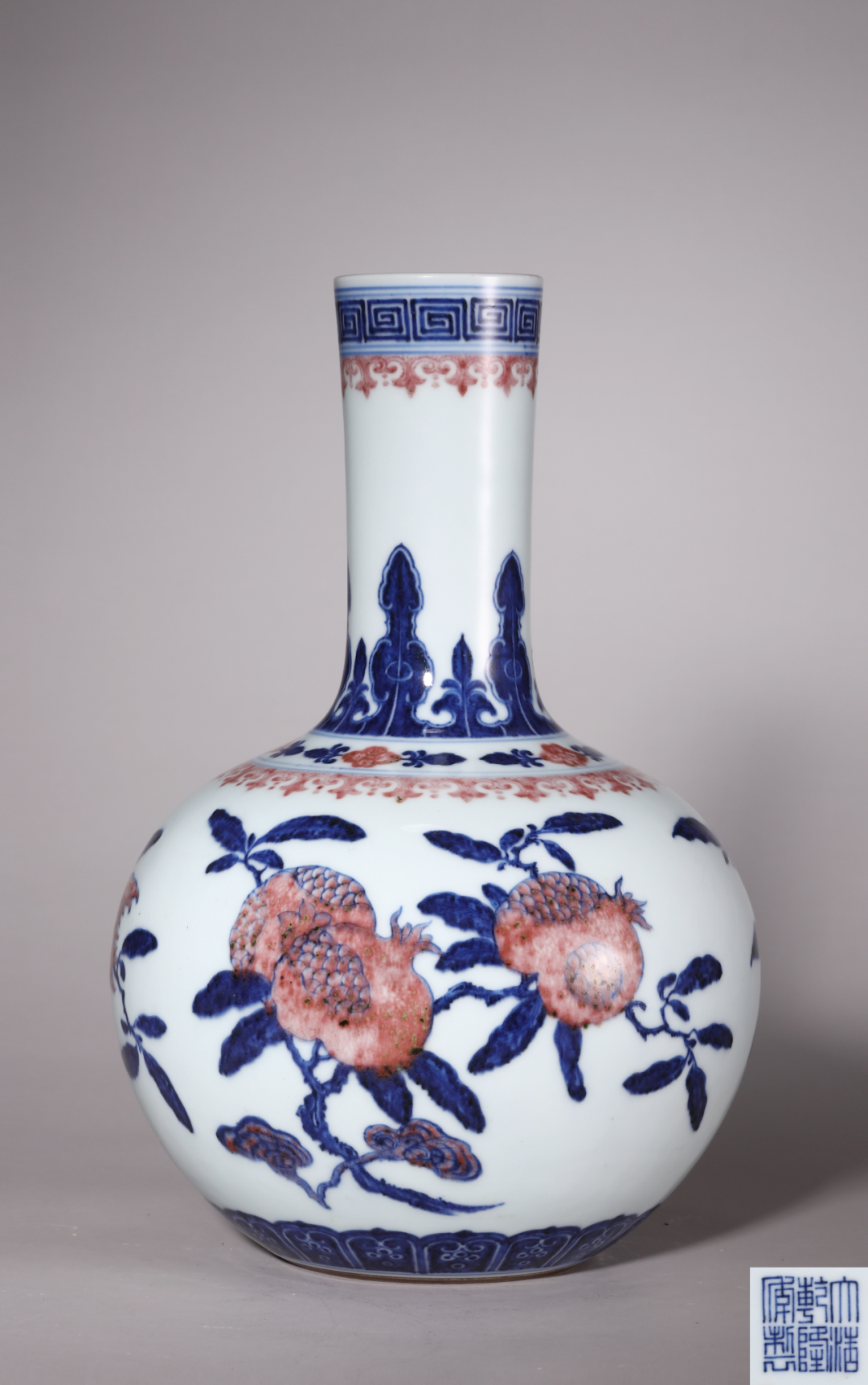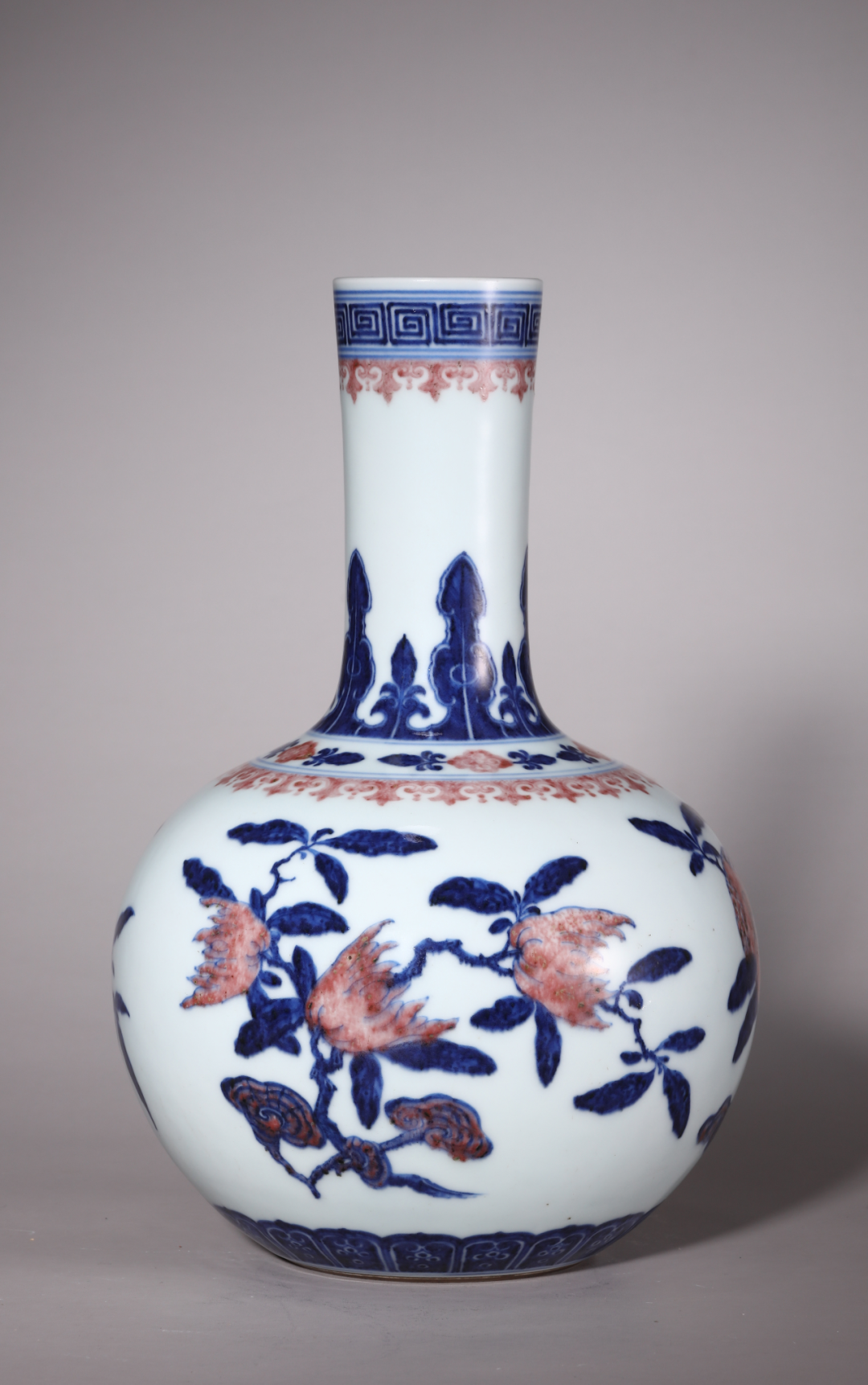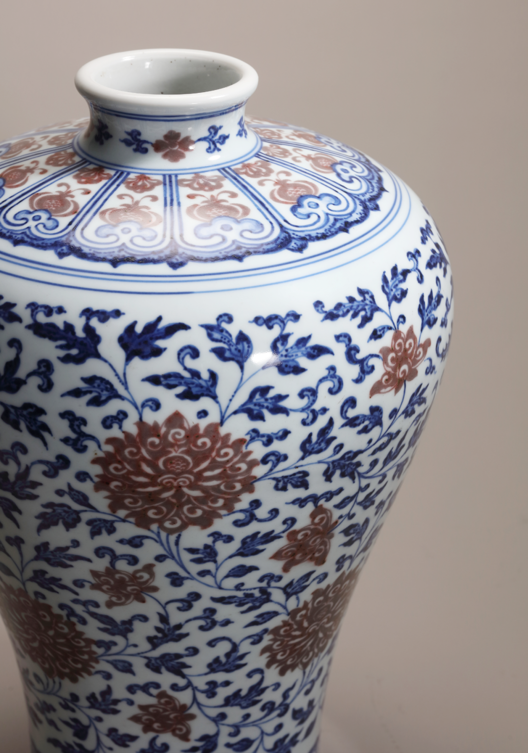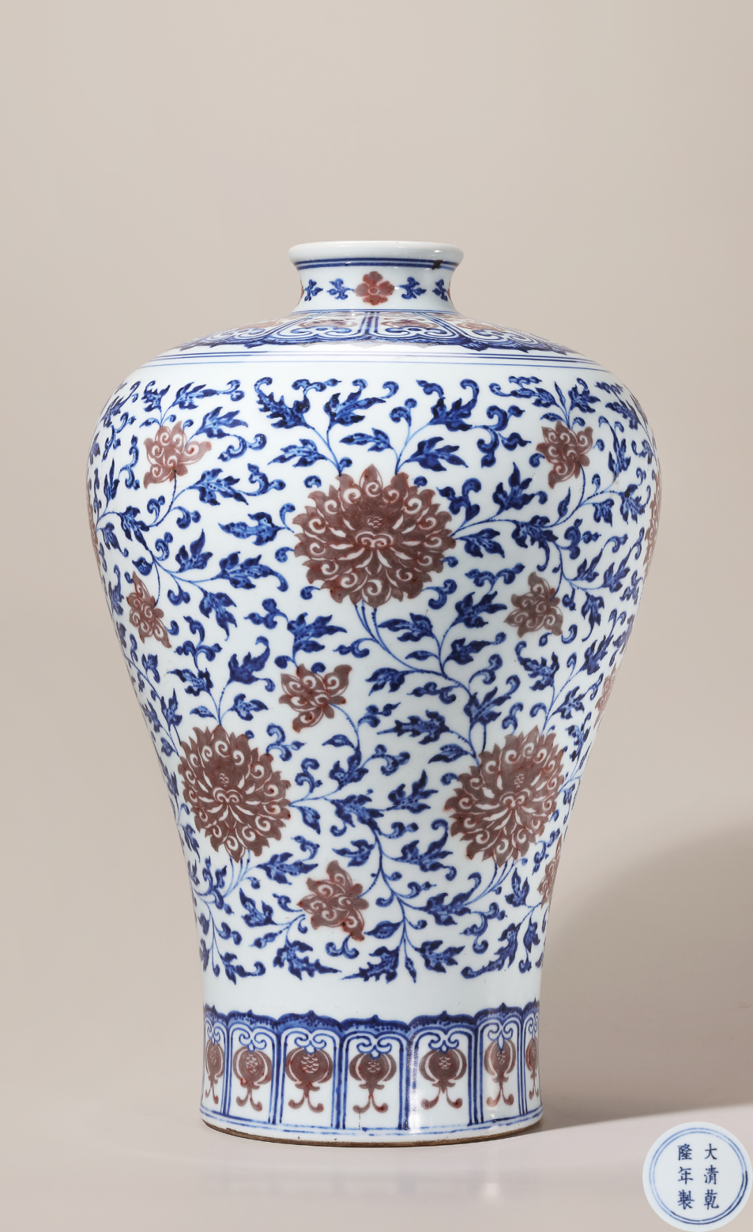 清乾隆 青花釉里红缠枝花卉纹梅瓶