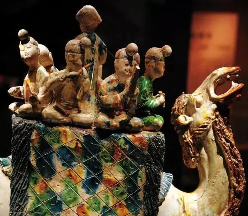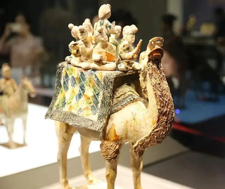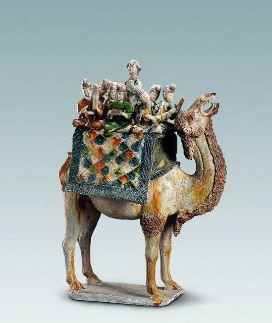 唐三彩骆驼载乐俑为研究唐代雕塑艺术、音乐舞蹈等提供了宝贵资料,它既是唐代文化艺术、制作工艺发达昌盛的重要物证,也见证了丝绸之路上的交流与融合,2013年8月被国家文物局列入《第三批禁止出境展览文物目录》。