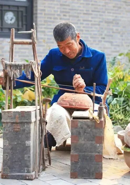 有板有眼地再现了300多年前锔匠走街串巷吆喝的情景。