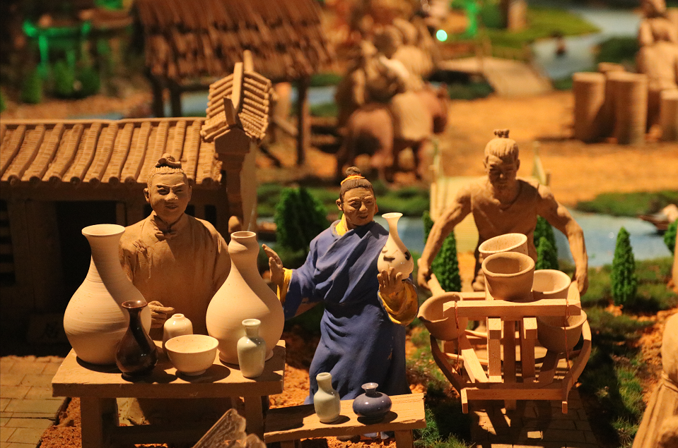 施釉与绘画(图源:北京陶瓷艺术馆沙盘)