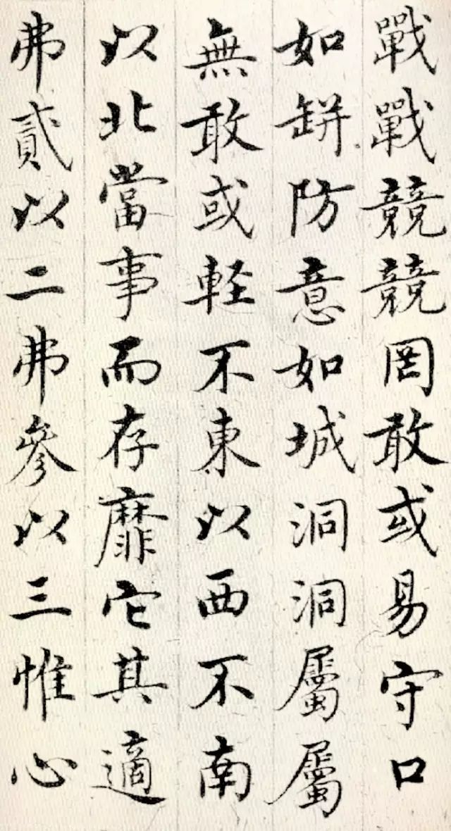 楷书八法(横、竖、撇、捺、点、钩、挑、折)齐备,最为严格,以此绳之,可算严师严教,定能精进。楷书笔势稳健,如慢动作,一招一式,皆完整到位,规范有致。其点画和结构,非常精细,最能训练基本功夫,最能培养不浮不躁的心境。是得法、入门的正道。近人潘天寿说得好:“开始学书法,必须求法则,要正规,要从正楷开始。”