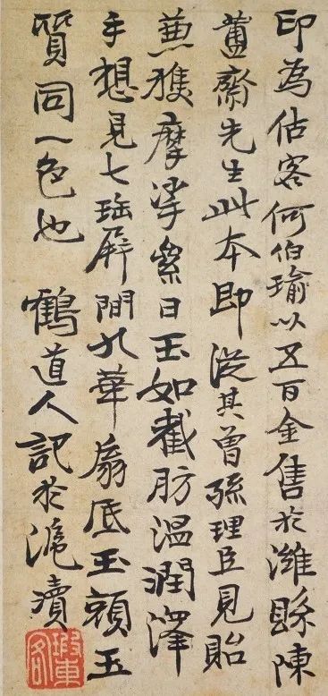 印为估客何伯瑜以五百金售于潍县陈簠斋先生,此本即从其曾孙理臣见贻,兼获摩挲累日。玉如截肪,温润泽手,想见七宝屏间九华扇底玉颜玉质,同一色也。鹤道人记于沪渎。