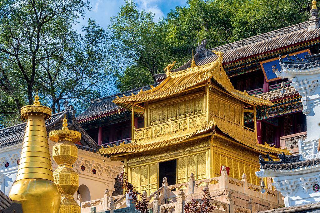 全国重点文物保护单位,全寺现有大小房屋四百多间,且大多为明、清时期的建筑,布列于中轴线上的主要殿宇七座,从南到北,依次为观音殿、大文殊殿、大雄宝殿、无梁殿、千钵文殊殿、铜殿、藏经楼。此外,还有钟楼、僧舍和各种配殿。建筑样式各异,多带宫廷建筑色彩,堪称明清寺庙建筑的典型。