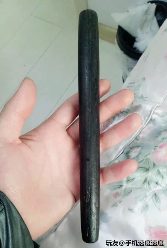 有玩家找到自己家的擀面杖,发现黑黝黝,已经看不出纹路了,但是包浆倒是还不错,就是不知道什么木头。