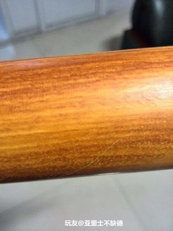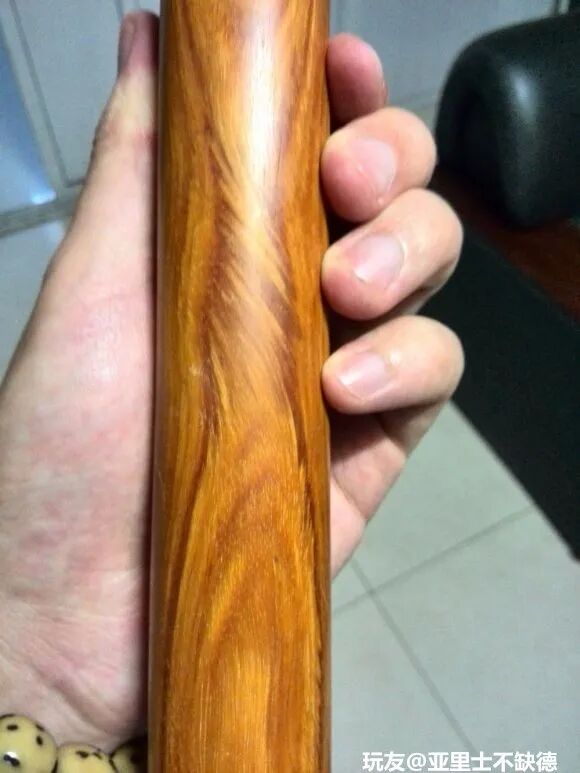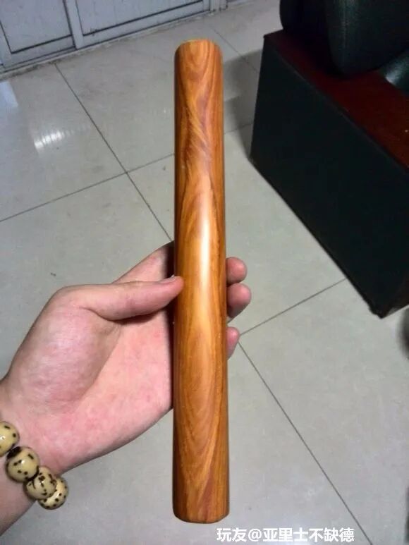 玩友@尼古拉斯凯男 家里这擀面杖放了几十年了,搬家给找出来了。砂纸打的时候掉红屑,上棉布也是红,他怀疑是小叶紫檀。