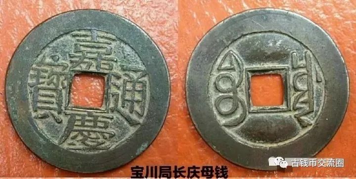 所以由此可见,此版式的钱文古已有之,并不是嘉庆的独创,省掉一笔以后确实更美观大方。中国的铸钱是循序渐进一脉相承的,所以从这个角度来说,弃用正规写法,而转用省略的写法,也是很符合常理的。在这里顺便提一下,嘉庆通宝中的宫钱,嘉庆通宝天下太平的庆字,也是用正规的写法没有省略笔画的,以至于如今还有人叫长庆为:天钱小平版,而且地方局之中的宝川、宝云二局,也有罕见的长庆版存世。