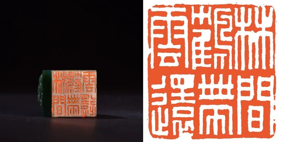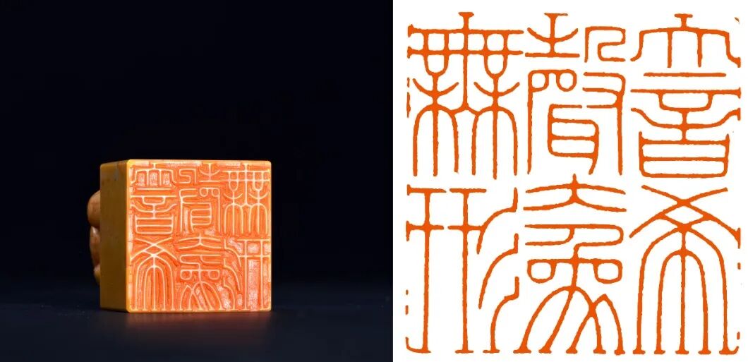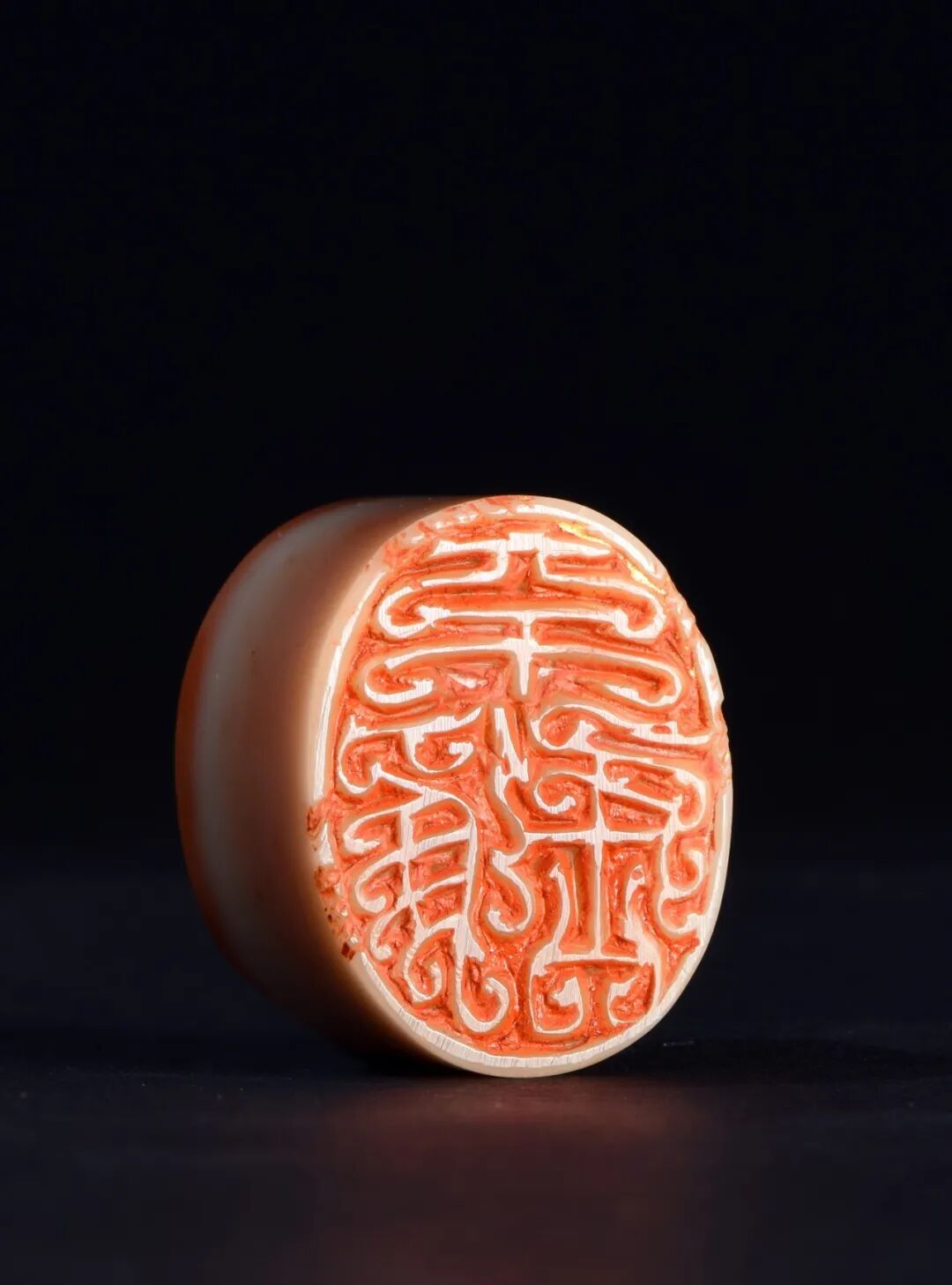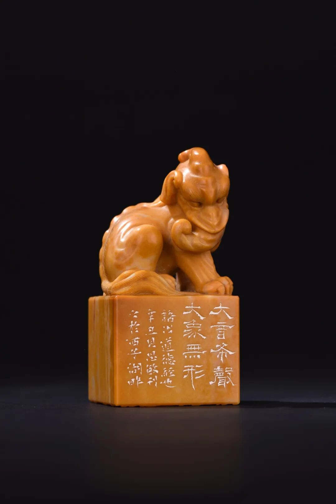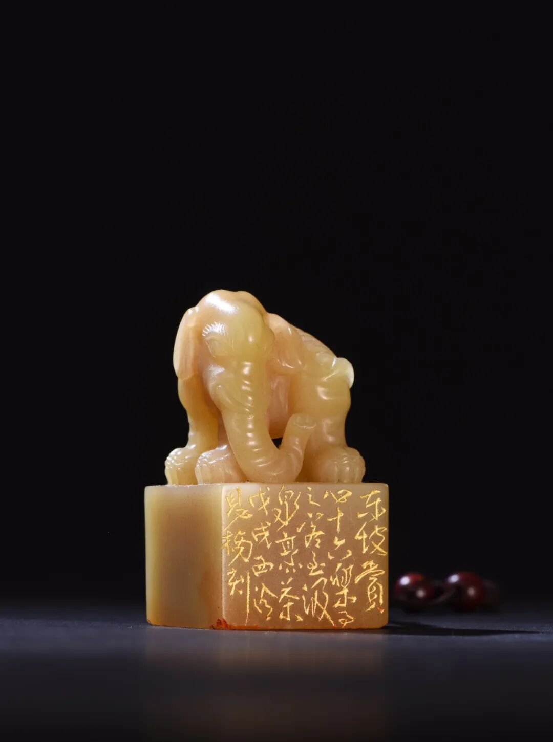 贝思敏博士此方《大音希声 大象无形》寓意一种艺术和美的最高境界,进入自然朴素而没有任何人为痕迹的本真境界。此寿山牛蛋象钮雕工精细,栩栩如生,石质老性凝结,油脂感足,色泽浓而不艳,很是稳重;印文布局工整端庄,无边框的设计更体现内容的大气,线条流畅不失劲道,方中有圆,圆中带方,很有创造性,文间气息灵动自然,雅致又有气势,值得珍藏。