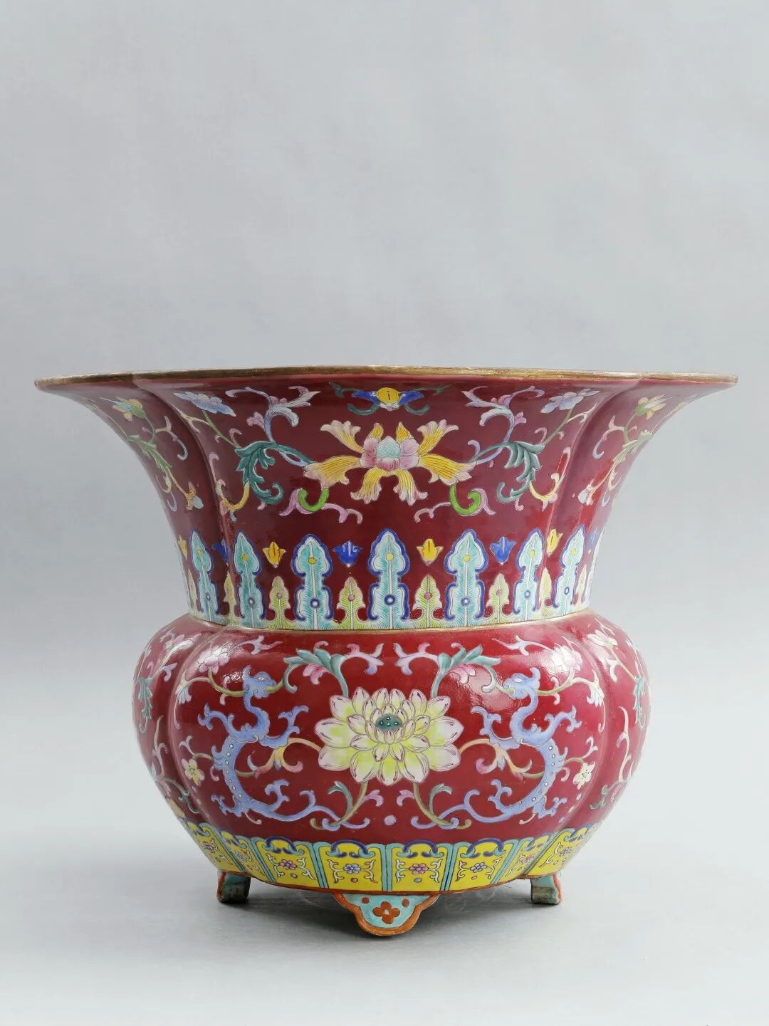 清乾隆 胭脂红釉粉彩花卉纹大尊