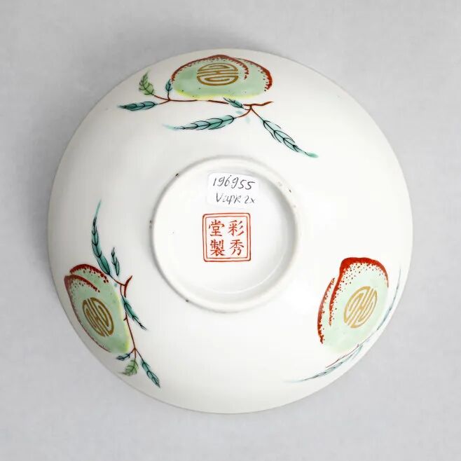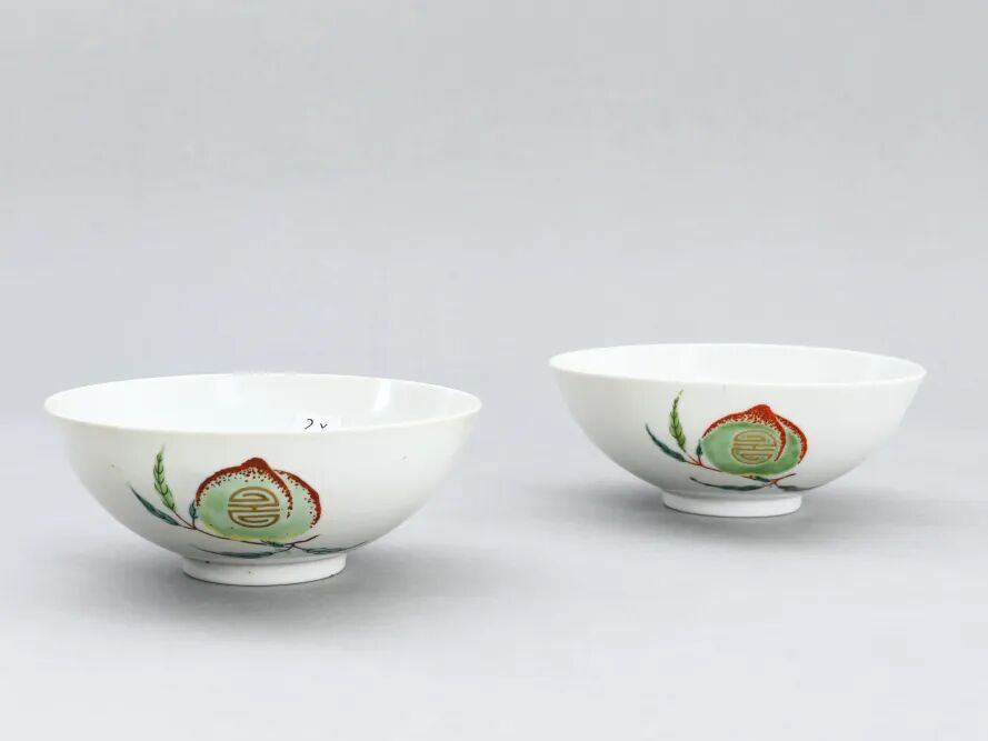 清乾隆 “彩秀堂制”粉彩折枝仙桃纹碗一对