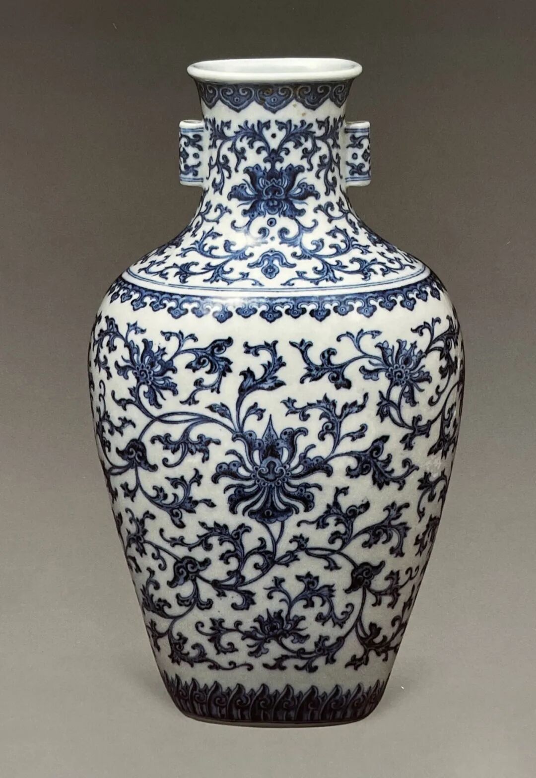 清乾隆 青花缠枝蕃莲纹贯耳瓶