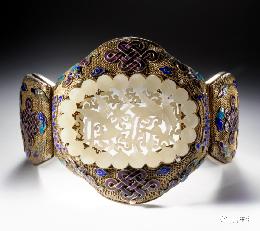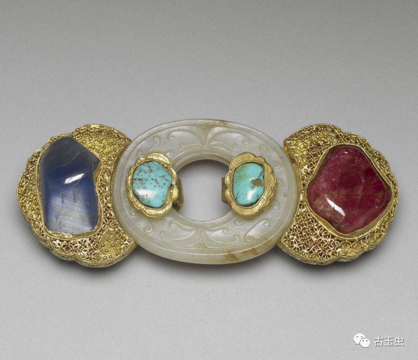 明晚期 银累丝掐丝珐琅嵌玉带扣 美国洛杉矶郡博物馆藏