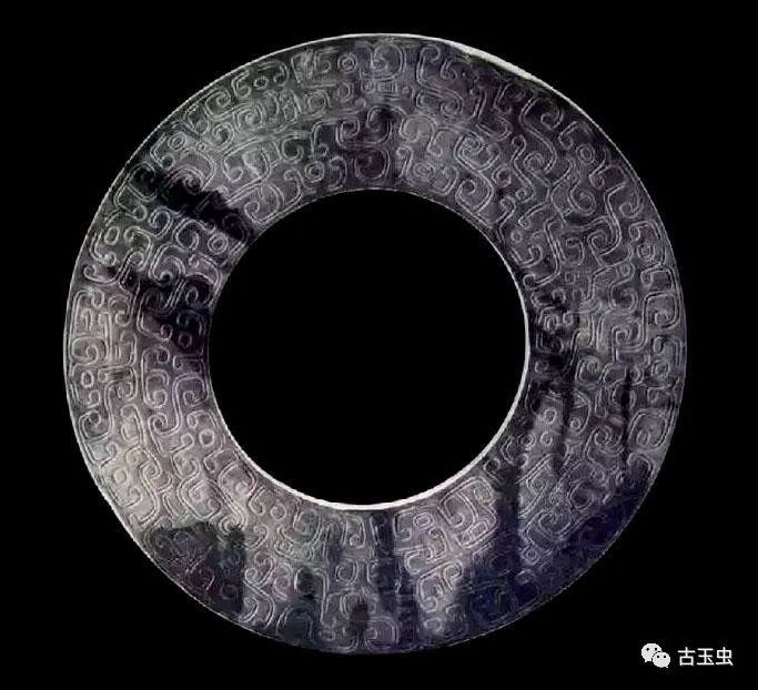 蒲纹玉璧 外径14厘米,内径4.3厘米,厚0.25厘米