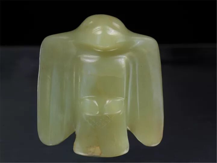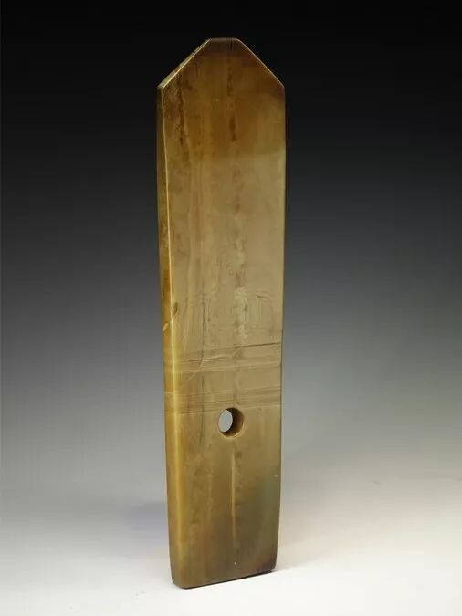 新石器龙山文化 黄玉鹰纹鸮首纹圭