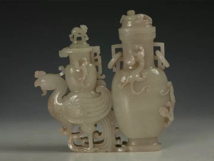 清 乾隆年制款白玉凤螭纹双联盖瓶