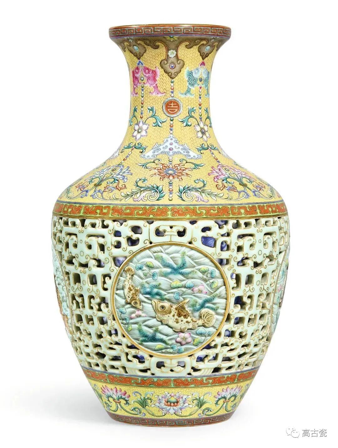 NO.1 清乾隆 粉彩镂空“吉庆有余”转心瓶