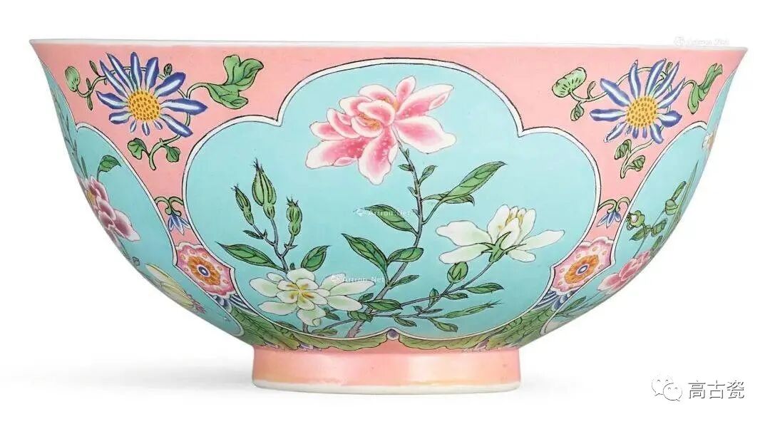 NO.3 清康熙 粉红地珐琅彩开光花卉盌