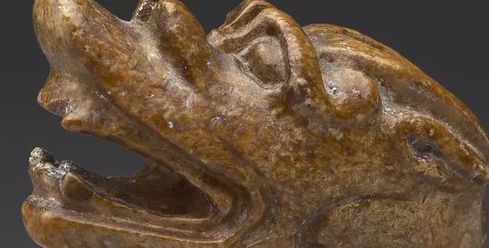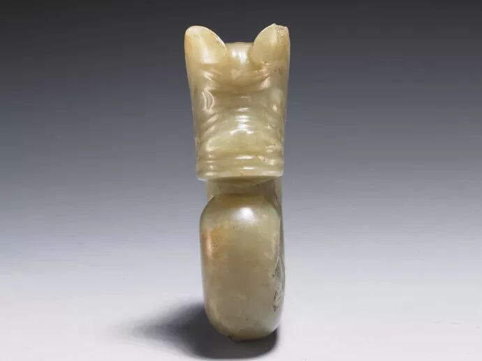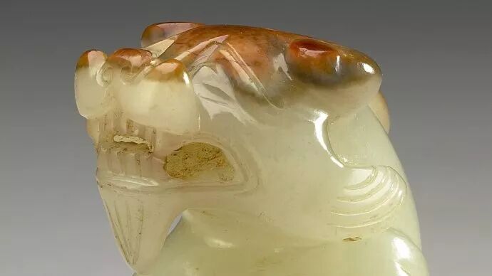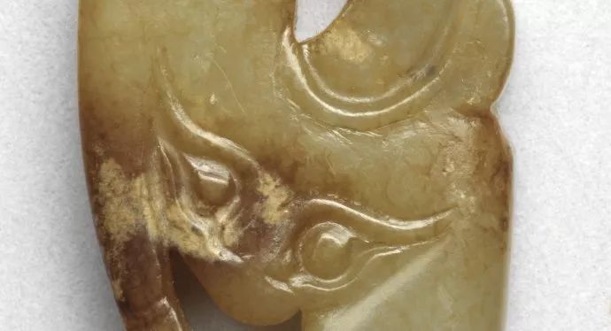 螭是龙的一种,几分似虎。玉觹器面微泛褐红,是传世器特有的“盘红”色泽。![台北故宫:再现几件永恒经典的上古之玉]()