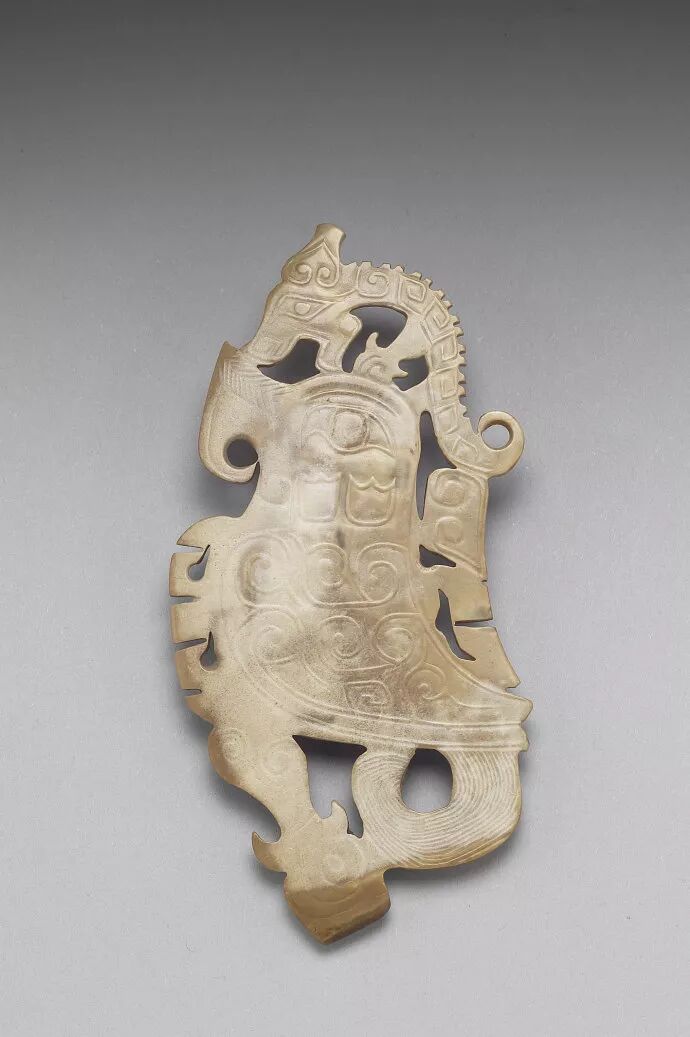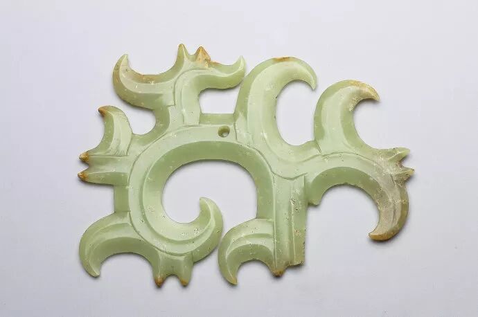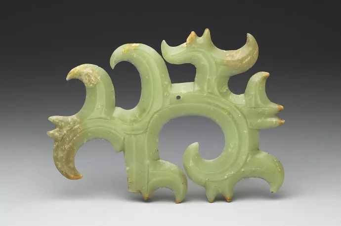 这是台北国立故宫博物院中几件来自于清宫旧藏的古玉,有着丰富的历史内涵和时代的典型特征。正因如此,我们今天再现其风貌,再观其细腻的雕琢,是具有强烈的现实意义的。红山文化晚期勾云型玉佩14.2X19.1X0.55厘米辽河之西、燕山之北的广漠的草原上,常翱翔着成群的鹰雕;从而使红山文化居民信奉这类以厚实弯喙为特征的猛禽为神的使者“玄鸟”。勾云纹就是用美玉雕琢抽象的,似乎是隐藏在云端里的神玄之鸟,因而成为巫师佩戴用以通神的礼器。![台北故宫:再现几件永恒经典的上古之玉]()
