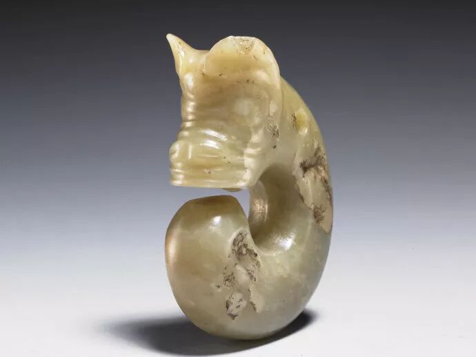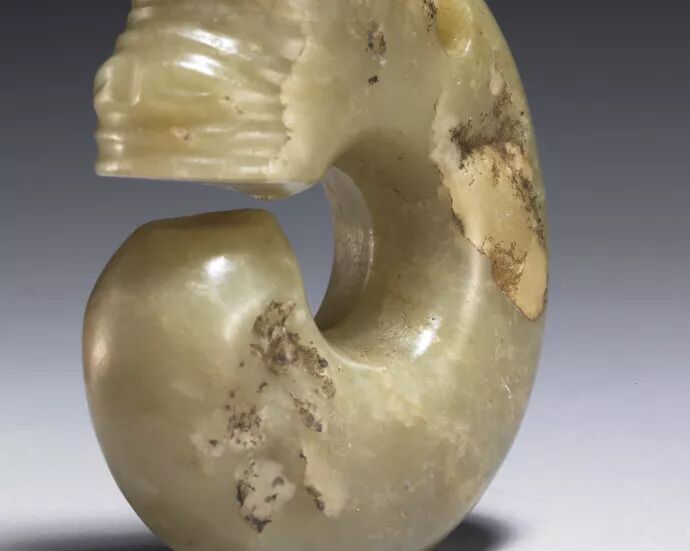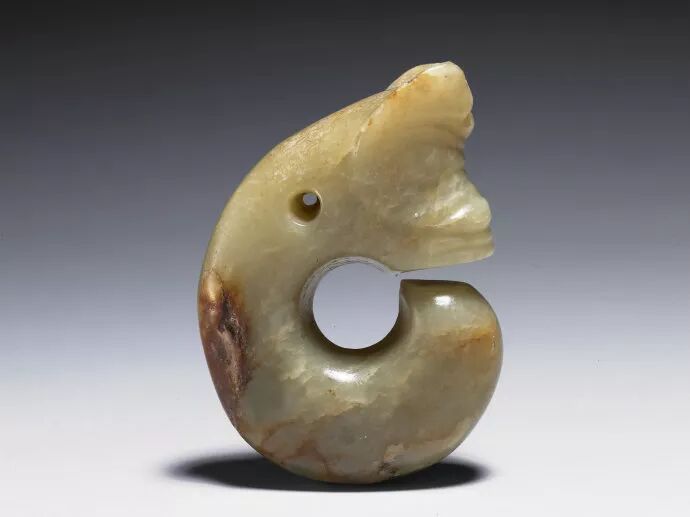 红山文化也分布于中国东北方,也就是今日的蒙古和辽宁一带。但年代晚于兴隆洼文化,大约距今五、六千年。红山文化继承了一些兴隆洼文化的特色,尤其以动物为主题的玉雕最为精巧。这件造型奇特的玉猪龙是红山文化中的典型玉器,具有动物胚胎的模样。或许是因为史前的先民相信胚胎最具生命的元气,就用这种造型来强调蜕变的生命力。![台北故宫:再现几件永恒经典的上古之玉]()