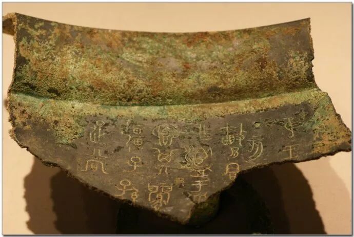 铜鉴盂残片三块碎片整体参考释文:唯王正月初吉丁亥,邛伯厚之孙稟君季蔥,自作鉴盂,用祀用饗,其眉寿无疆。