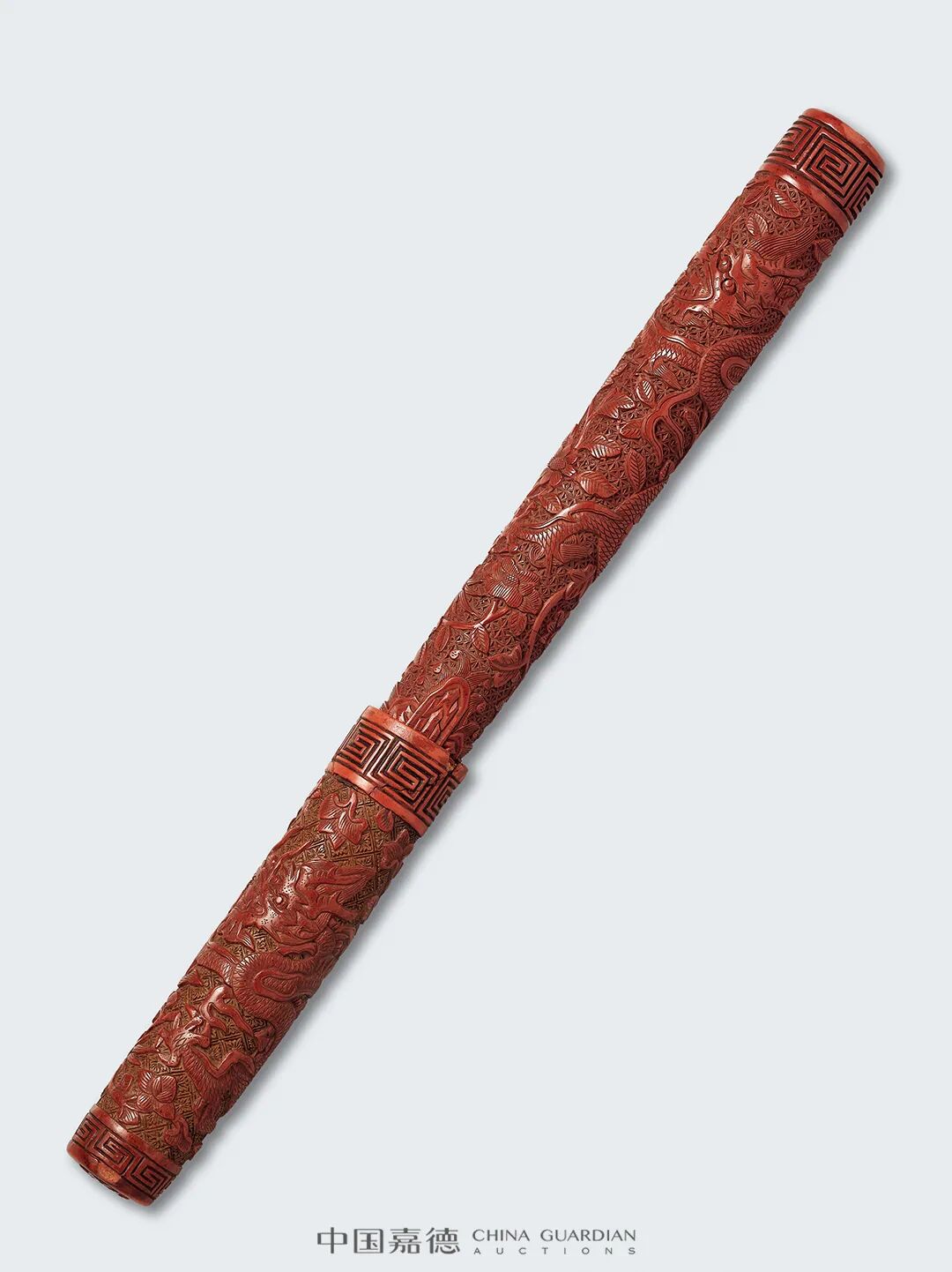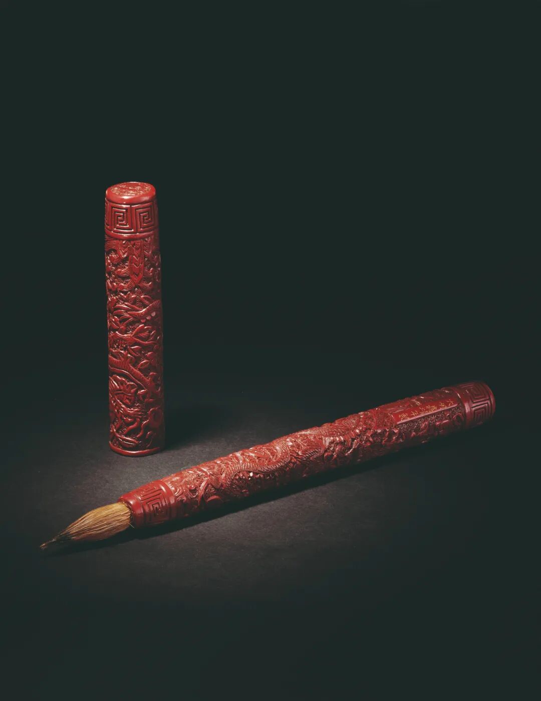剔红穿花龙纹笔”即是明中晚期官作剔红器物的典型代表,无论其漆色、刀法或纹饰均代表了当时制漆工艺的最高水平,珍贵异常。