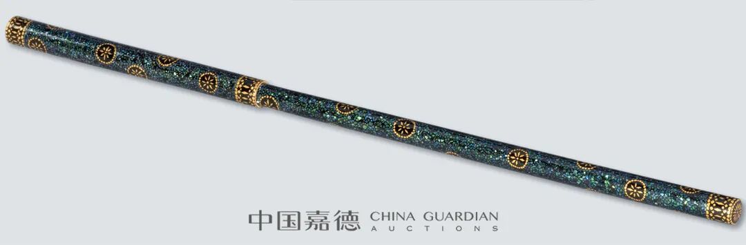 古代赏玩之笔在笔管制作上琳琅满目,工艺多样,但嵌螺钿并不多见,显得稀少珍贵,“螺钿”是漆工艺的一种手法,镶嵌螺钿的笔管华丽异常,深受当时的皇室与文人青睐。螺钿图案在所成器物上发出宝光,使得图案立体感十足,并在黑暗中呈现浮出表面般的神奇效果。此毛笔装饰精湛华丽,极尽良工之所能,一笔在手,如握星辰。
