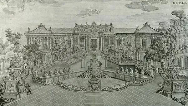 坐像玉质精白凝润,猪微微颔首,双勾菱形眼,长吻,额和鼻上琢刻皱褶,嘴部微张,双耳阔大,桃形耳垂于两侧,神态安详。猪身则仿照人形,着汉式交襟宽袖长袍,衣纹流畅,褶皱堆叠自然,一手握拳,一手持令箭,盘腿端坐。通过比较乾隆时期所制《圆明园西洋楼版画》之《海晏堂西面十》中十二生肖的形象可知,本品坐像的造型与圆明园海晏堂前水池十二生肖以水报时之亥猪的形象非常相似。
