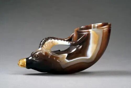 左:唐 镶金兽首玛瑙杯 陕西历史博物馆藏