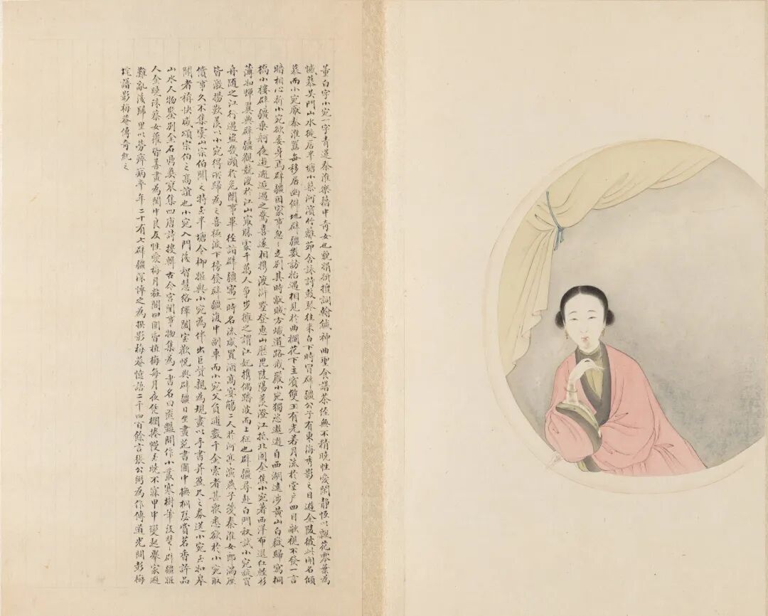 作者叶衍兰(1823—1897),字南雪,号兰台,别署秋梦主人,广东番禺人,清咸丰六年(1856年)进士。《历代文苑像传》为叶氏摹绘中国历代文人雅士合集,上迄东晋陶渊明,下至清代郑板桥,包含王公、大臣、将帅、贤士乃至释道、姬媛人物等。像传大多数为左书小传、右绘人物,笔法细秀,色泽淡雅。小楷字迹严整工秀,甚为悦目。