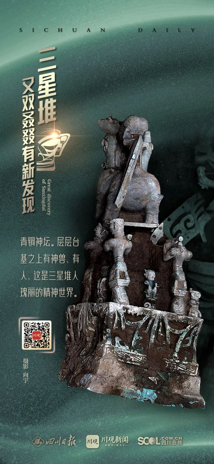 早在12日,8号坑青铜神坛成功提取。神坛台基之上第一层平台的正中央,一尊微缩版背罍青铜人像跪于隆起的台基之上。北京大学考古文博学院教授雷兴山介绍,这个小人能够身处神坛最中央,当是人以物贵。