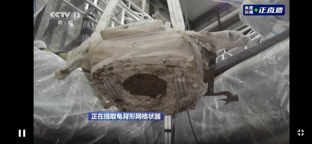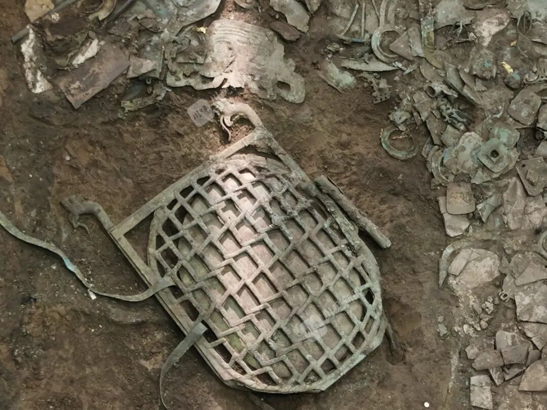6月14日下午,三星堆7号祭祀坑,龟背形网格青铜器成功提取!
