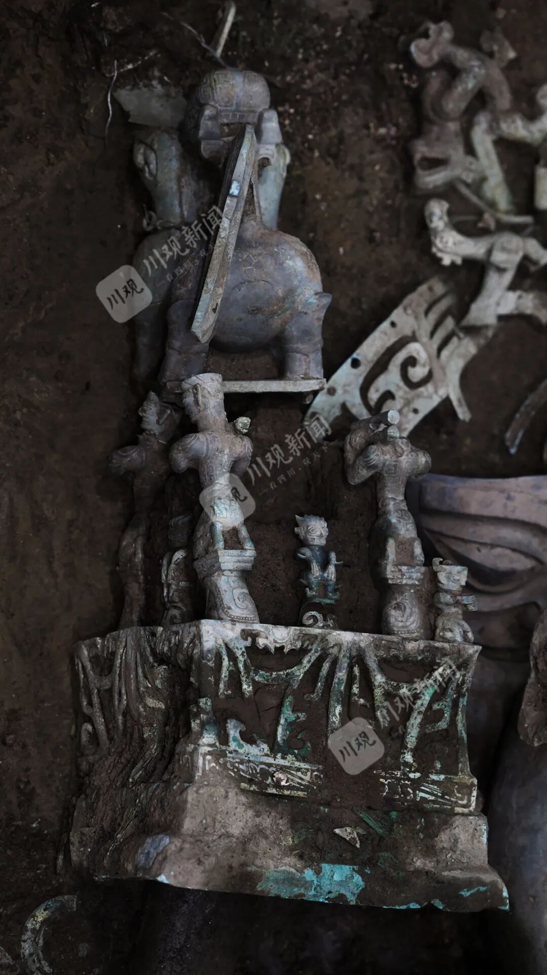 7号坑坑长、四川大学考古文博学院教授黎海超表示,这件器物最让人值得期待之处,便是未来的实验室考古中,去看看器物背面有没有丝质物,以确认这件器物是否曾经被全部包裹。