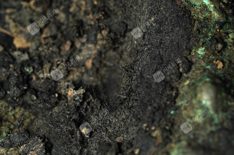 每一层铜片都薄如枫叶,方方正正一大摞,叠压在一起,内里还隐藏着什么信息,目前难以知晓。按照考古发掘作业流程,现在,考古专家给它起了一个十分普通的名字“铜片”。名字普通,但它承载的历史文化信息,却十分厚重。经历三千多年的埋藏,表明布满了青绿色锈蚀,但上面保留的黑色彩绘花纹,尤其让考古专家感到意外。