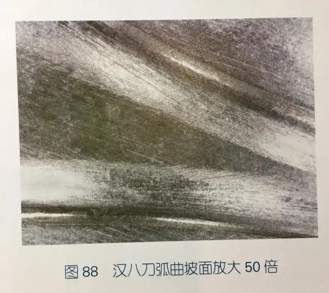 汉八刀工艺砣痕拼接痕迹不明显,且后期经过仔细打磨,阴刻线中常见平行浅细划痕,这是砣具带动潮湿解玉砂返复砣工痕迹。