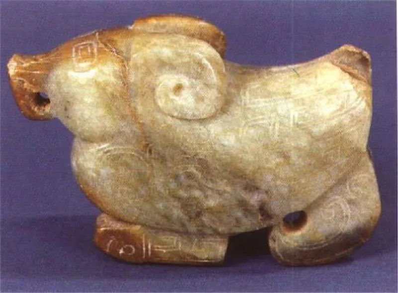 一块玉石,大刀阔斧寥寥几刀,如刀切萝卜般切出似同生命的活力奔放(图6),这是中国古工制玉阴刻线技法的完美诠释,堪称阴刻线工艺的完美收官、堪为坡刀工艺的登峰造极。