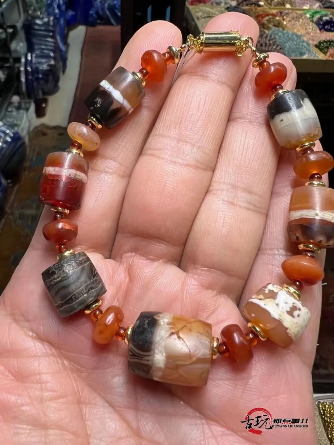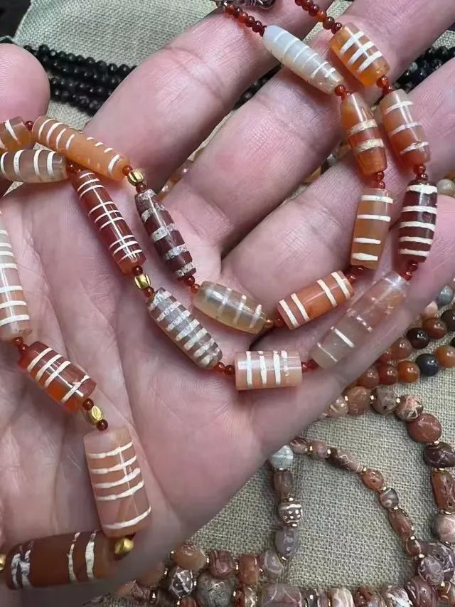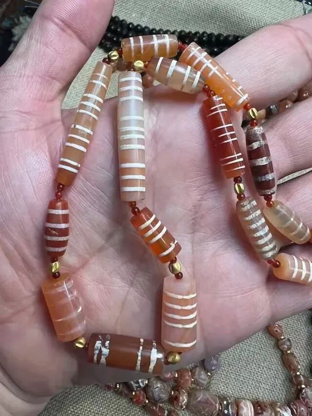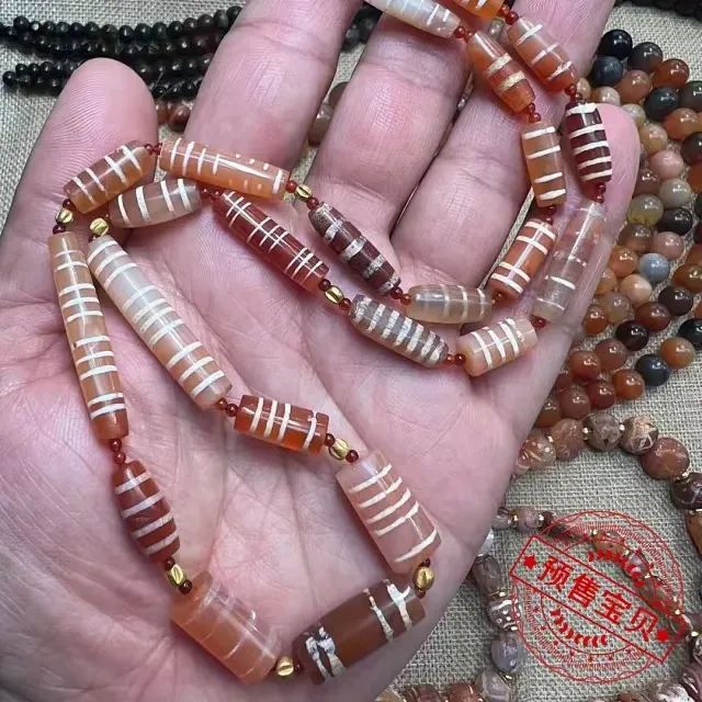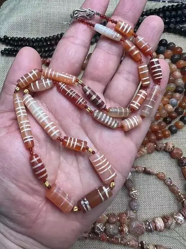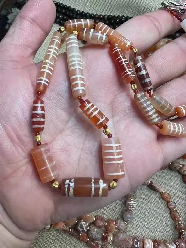 【古玩那点事儿】千年红玉髓镶蚀线珠玛瑙古珠pyu珠组合项链