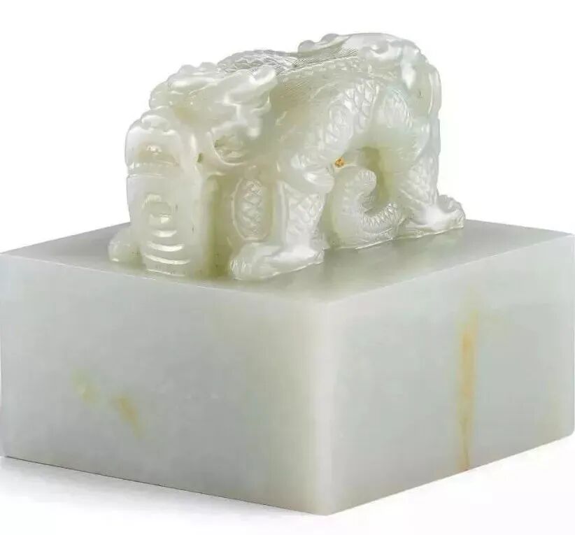 清嘉庆 御制白玉交龙钮方玺(1800-2400万)