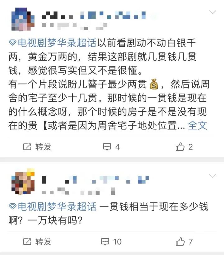除了主演们的颜值和剧情,网友们对剧里的“钱”也很有兴趣。