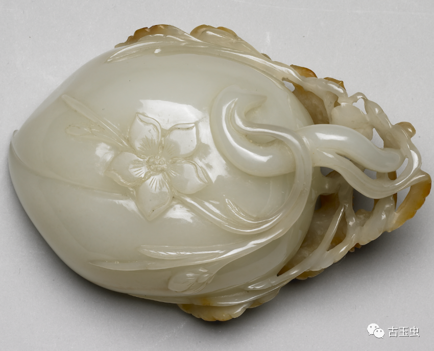 明中晚期 玉花鸟纹桃形水盛 台北故宫博物院馆藏