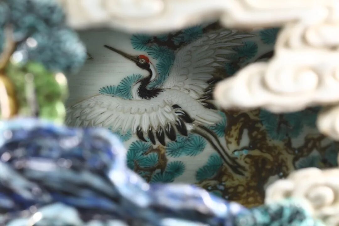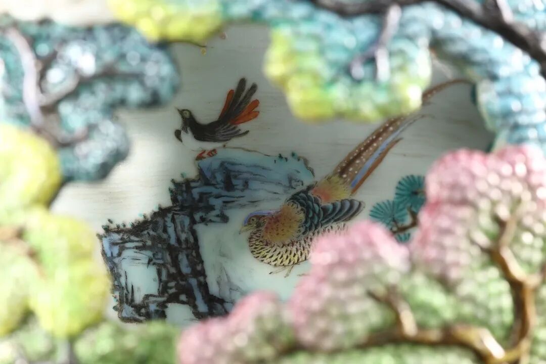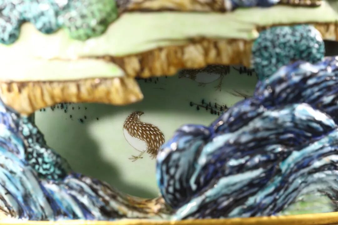 ‘八蛮进宝’山高水长大瓷板挂屏(局部)