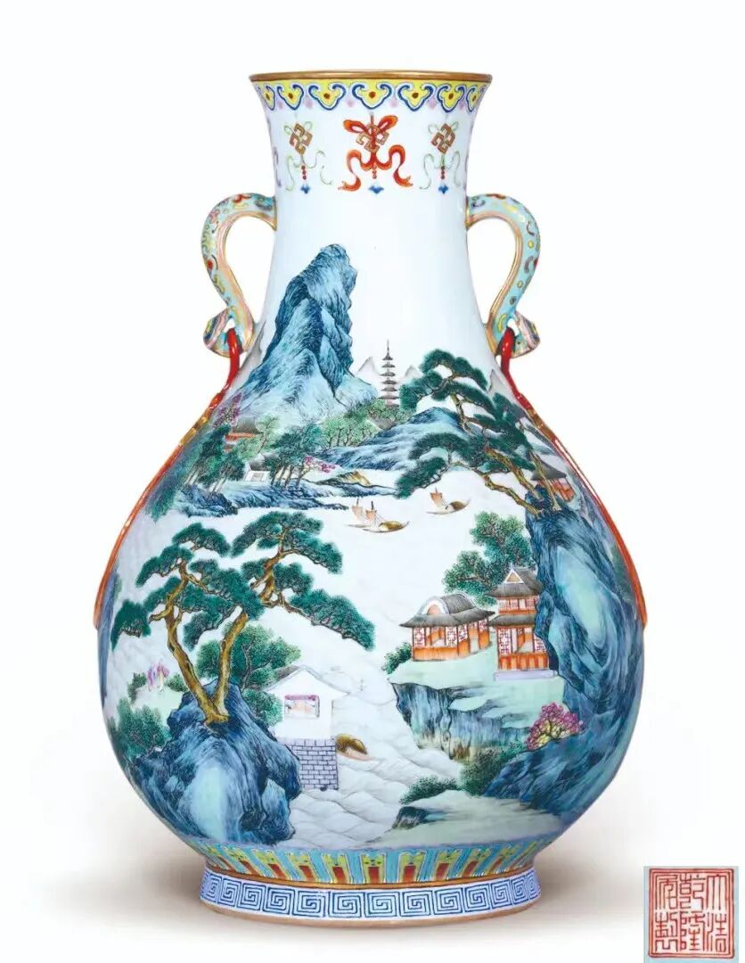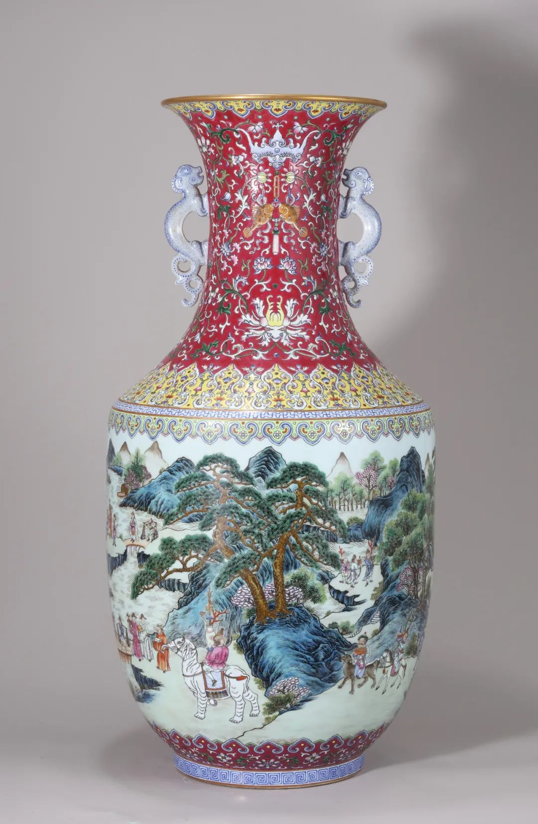 清乾隆御制洋彩江山万代如意耳琵琶尊